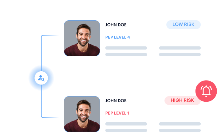 Identify Politically Exposed Persons (PEPs) across a four-tier global framework and access historical records to track PEP status over time. Automatically map relatives and close associates into an evolving influence graph, ensuring comprehensive risk assessments and a dynamic view of potential risks.