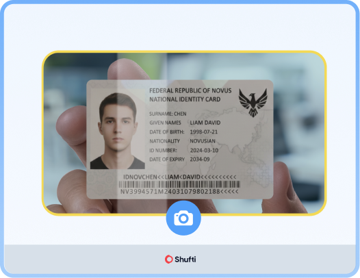 Shufti AI detects the physical properties of a real document. It instantly spots the light patterns from a screen display, the flat texture of a scan and the colour flaws of a photocopy.