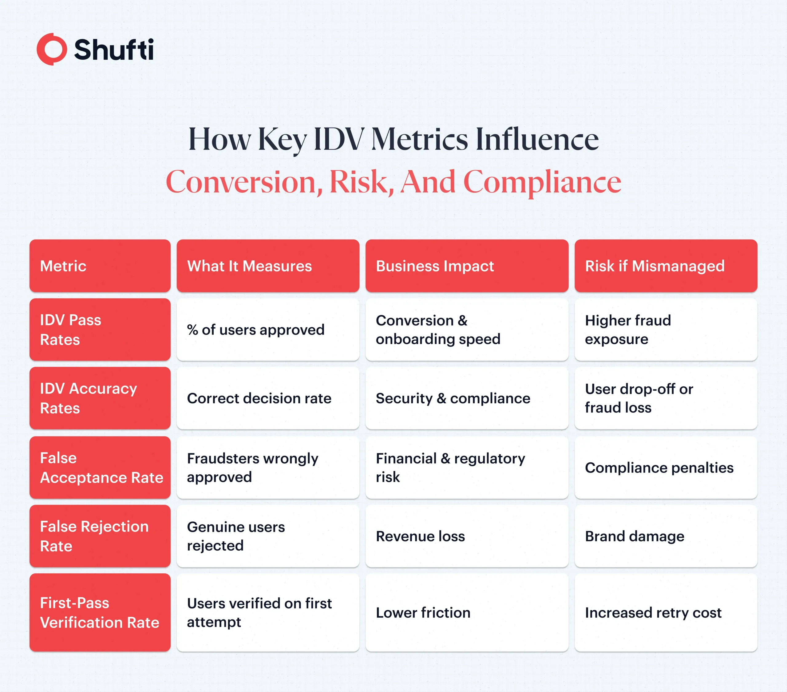 Optimizing identity verification is not about pushing a single number higher. Companies that only aim to boost the IDV pass rates might experience a short-term rise in onboarding but may be opening up to a higher risk of fraud. Conversely, increased control with the sole aim of enhancing the accuracy of the IDV may inadvertently cause friction, which may drive away the honest customer. Sustainable performance needs balance since the two metrics have a direct impact on revenue, compliance, and operational cost.