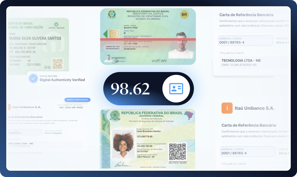 A Shufti verifica mais de 35 tipos de documentos oficiais de identificação brasileiros.