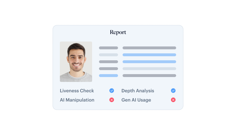 Adds controlled capture steps when risk is higher, such as account recovery, step-up authentication, and suspicious onboarding attempts. This helps reduce replay and scripted media attempts.