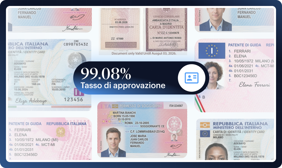 Relevant to the Italian document ecosystem, including the CIE, passports and residence permits. Shufti supports document checks, selfie verification and fallback logic across the main official identity routes.