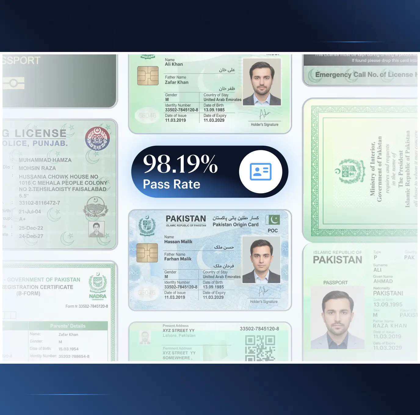 Verify CNIC, Smart CNIC, NICOP and Pakistani passports, support SECP-registered business checks, and run AML screening aligned to Pakistan’s regulatory ecosystem, in one unified Shufti platform.