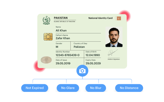 Shufti fits Pakistan’s CNIC/NICOP reality by supporting CNIC-first identity journeys (capture quality, extraction consistency, selfie-to-ID checks where required) and storing verification artefacts for compliance review.