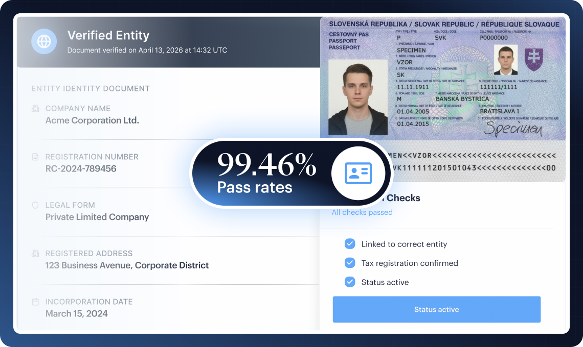 Multi-step verification maintains data consistency between individual (KYC) and business (KYB) identity evidence, reducing rejection and re-submission rates.
