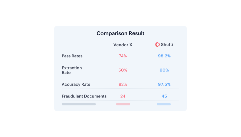 See exactly where your current provider misses fields, flags wrong users, or returns incomplete results, and how Shufti closes those gaps through superior accuracy, coverage, and decision quality.
