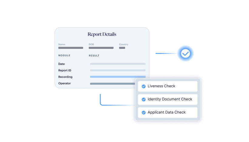 Run sanctions/watchlist/PEP checks alongside Video KYC. Get results with reason codes for compliance review.