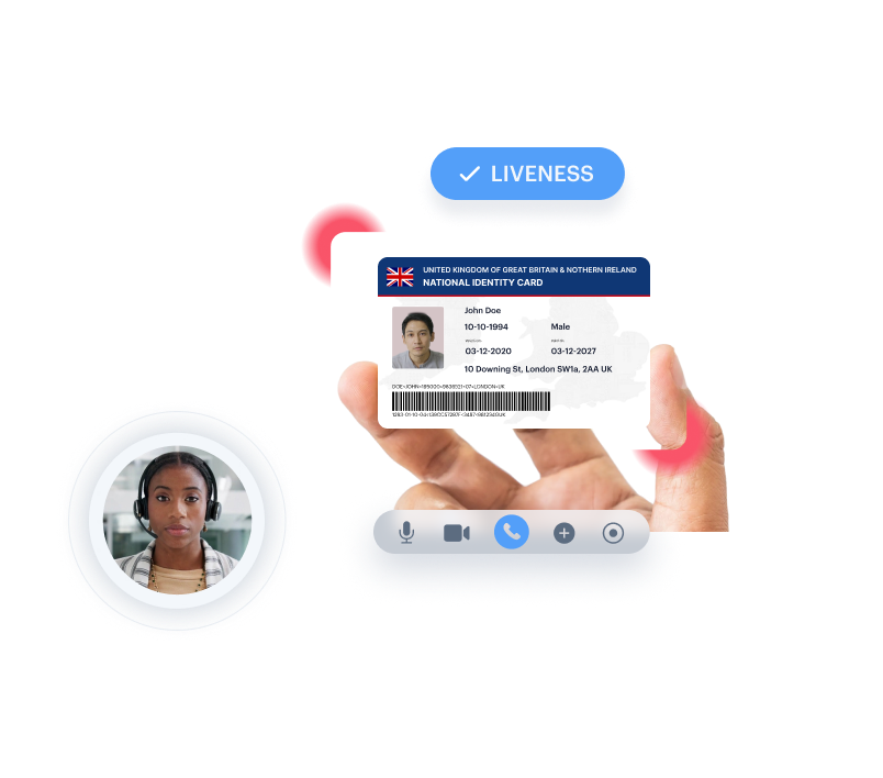 Validate government IDs and Proof of Address (PoA) simultaneously during the call.